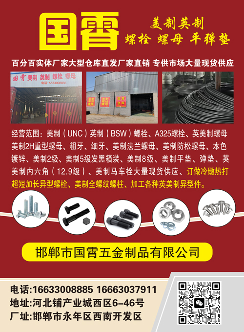 经营范围:美制(UNC)英制(BSW)螺栓